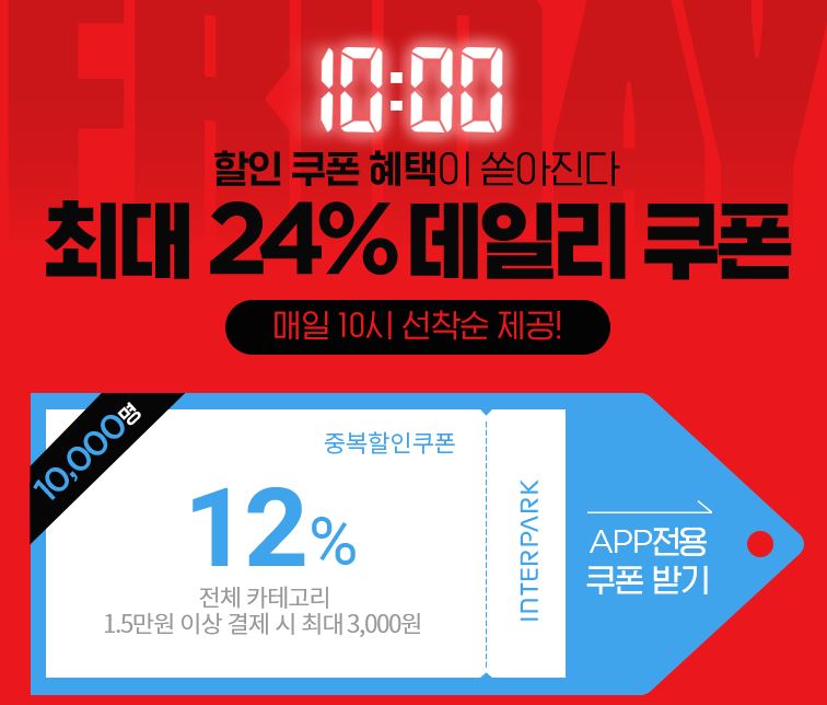 인터파크 쿠폰 10시로 바뀌었네요.