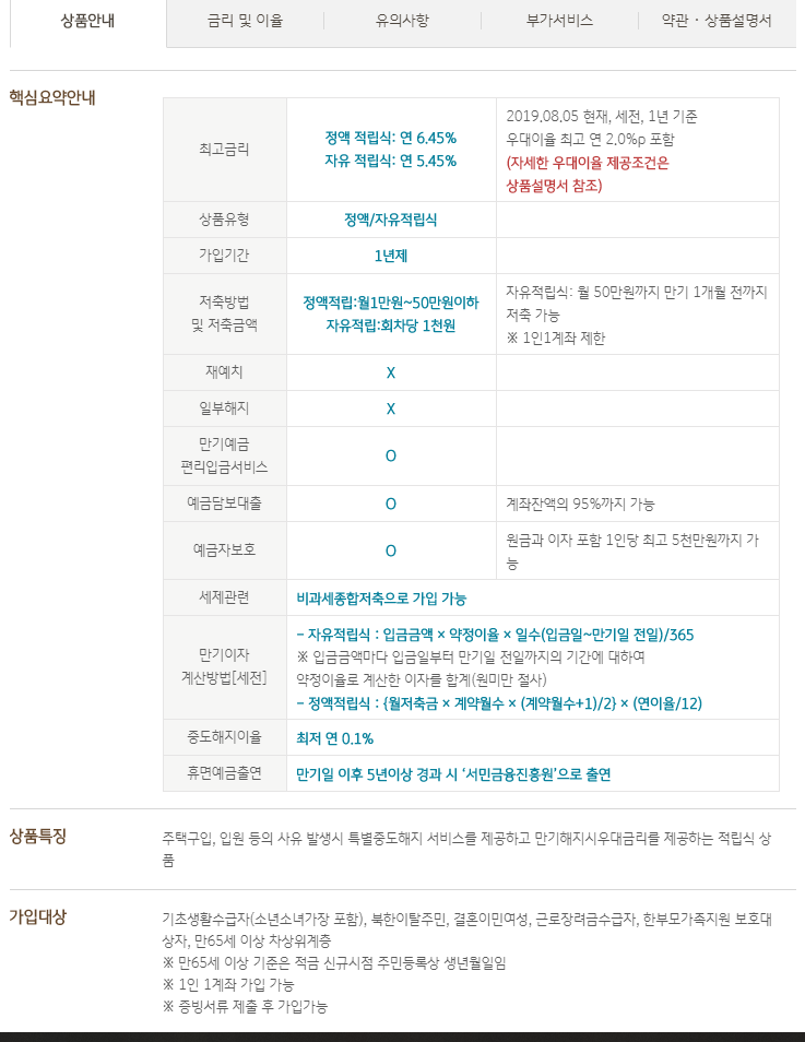 해당되는 분들이 정해져 있고, 말 그대로 배려 계층을 위한 적금이라고 생각합니디.