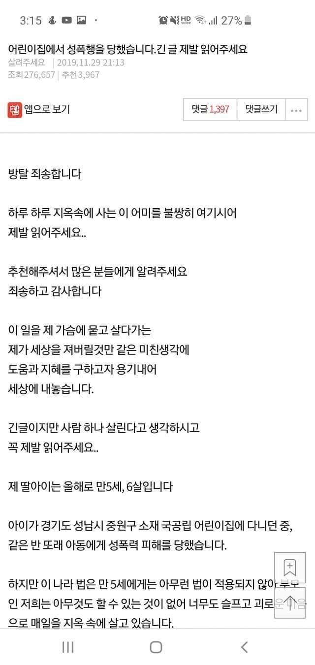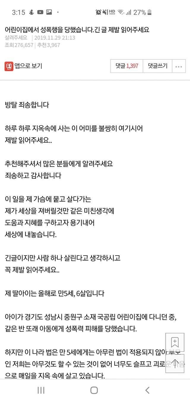 6살에 성폭행 기억을 가지고 살게된아이... > 자유게시판