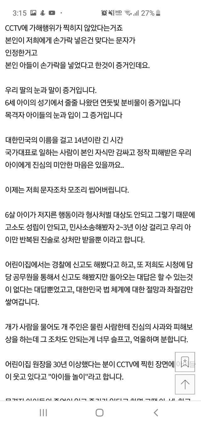 애를 대체 어떻게 교육시키면 이따위짓을 할수있는건지...남의 몸 건들지말란 교육도 안시키는건지...애비란 작자는.어찌 저리 쓰레기인지...피해아이가 저 기억을 지울수있을까요.. 맘이 안좋습니다 ㅠ