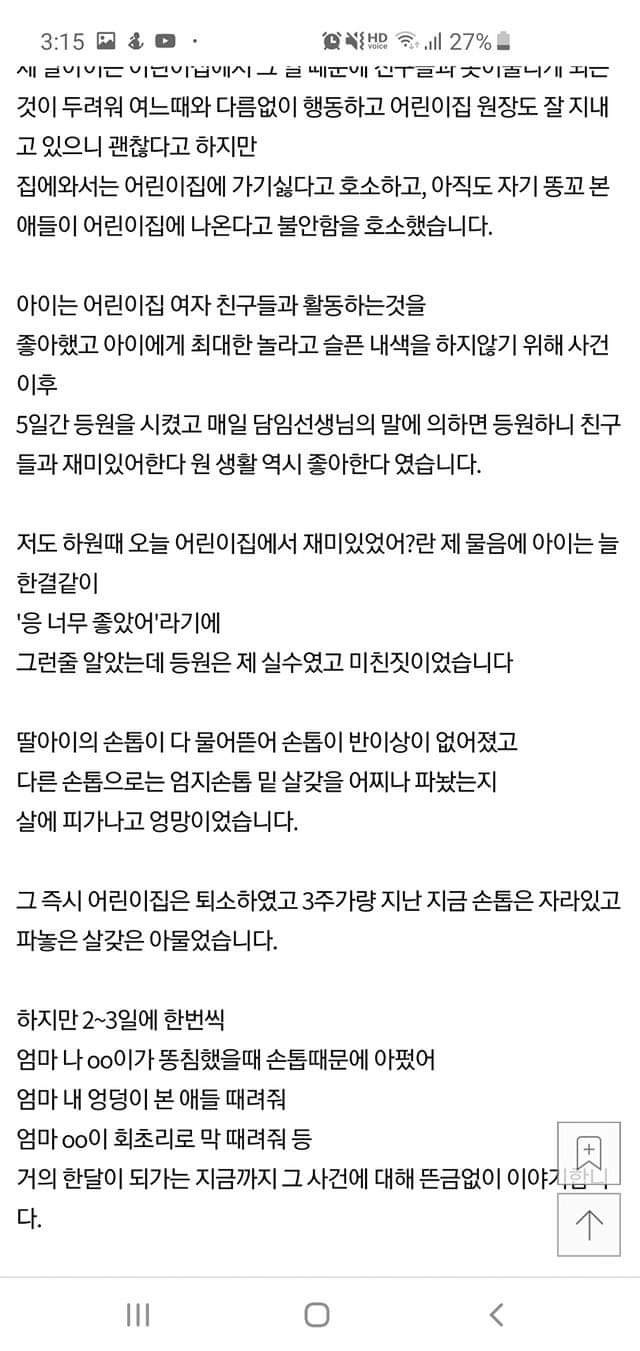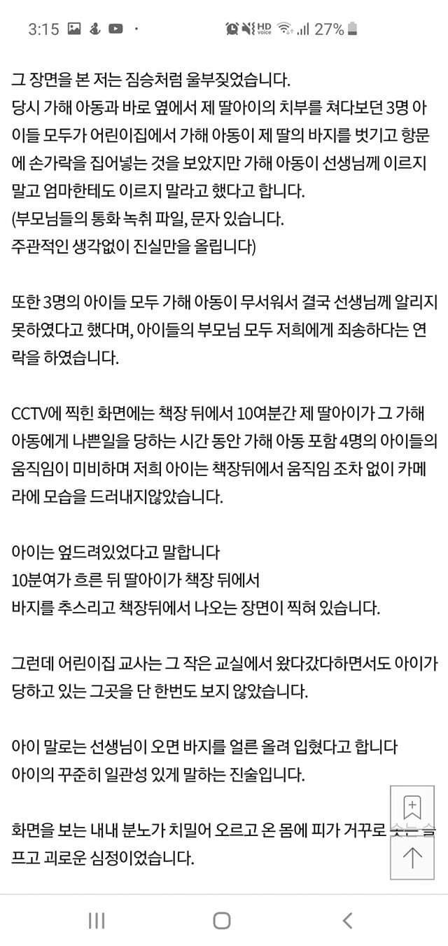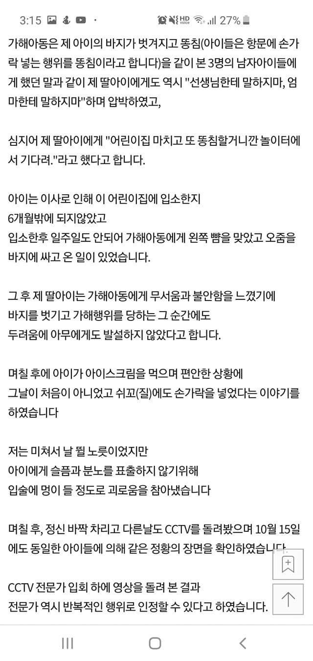 애가 어려 처벌이힘들면 결국 가해자부모와 어린이집 원장 선생이 책임져야죠~그러나저러나 애 키우기 점점 힘들어지네요