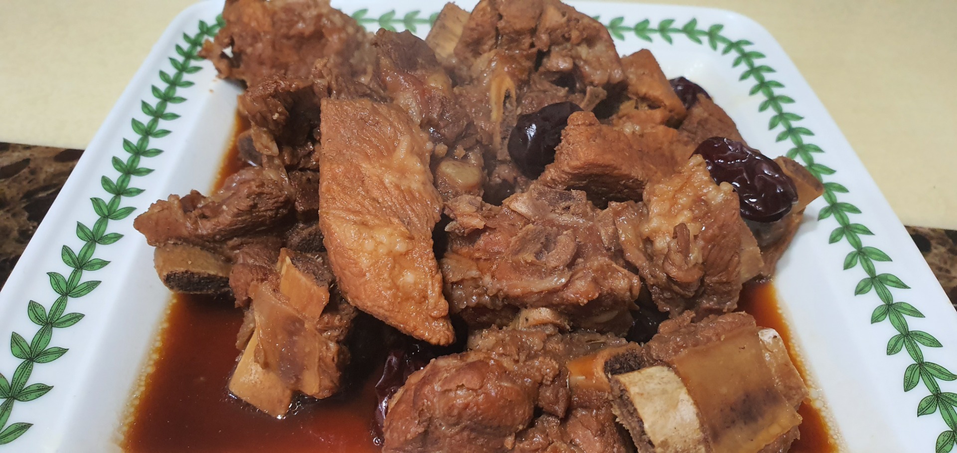 돼지갈비 핏물빼서 기름 제거하고 한번데쳐서 버리고 양념해서 압력솥에 넣어서 25분정도 쪘네요..