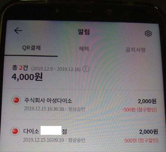 다이소 3곳에서 사용가능한데 직영점등 같은 이름으로 사용하는곳은 중복이라 적용 안된다고 들었습니다. |