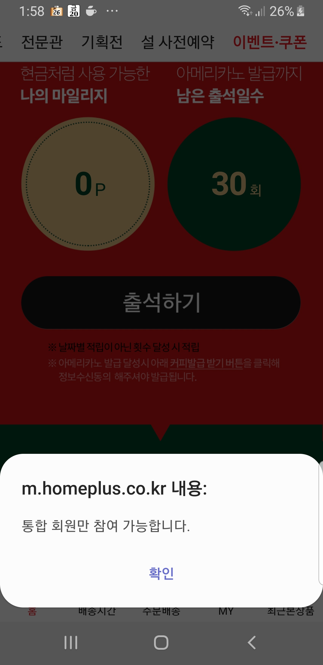 출첵 잘되네요. 점검이라 그랬나보아요.고객센터 문의글은 삭제했습니다. |