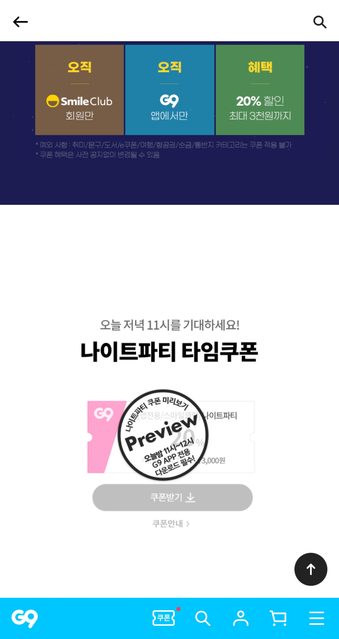 11시 땡하고 눌렀더니 쿠폰은 없고 이미 받았다는 문구만.... ㅠㅜ