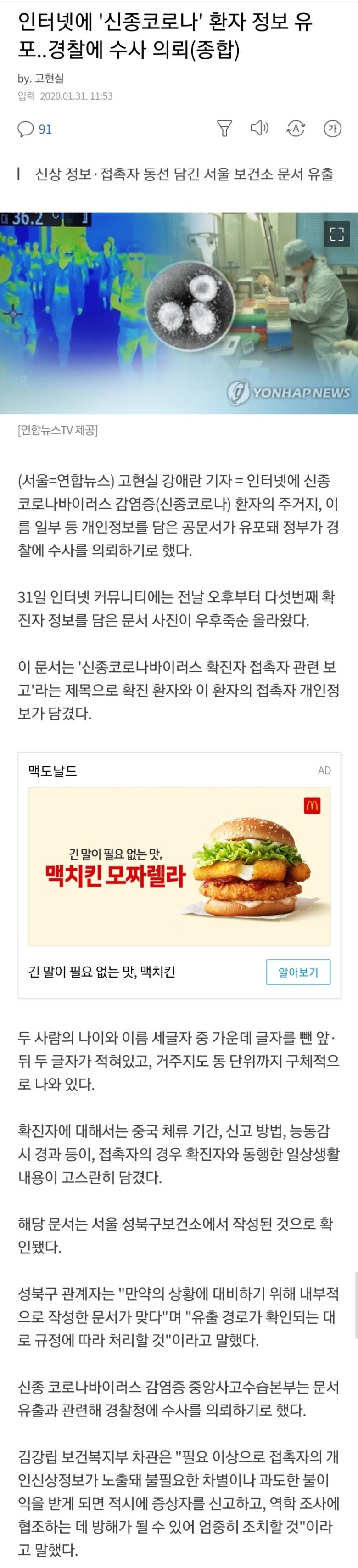 일단 추가 확진 기사 떴네요.