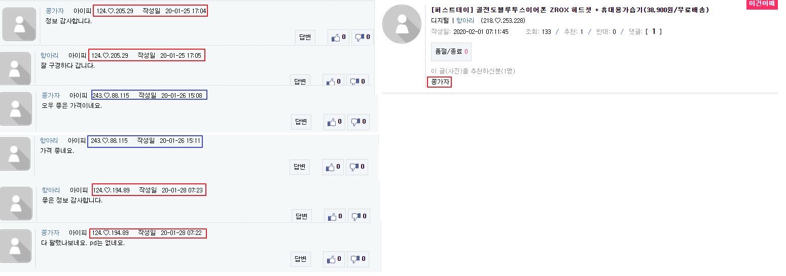 보다보니 같은 시간에 같은 아이피가 반복됩니다