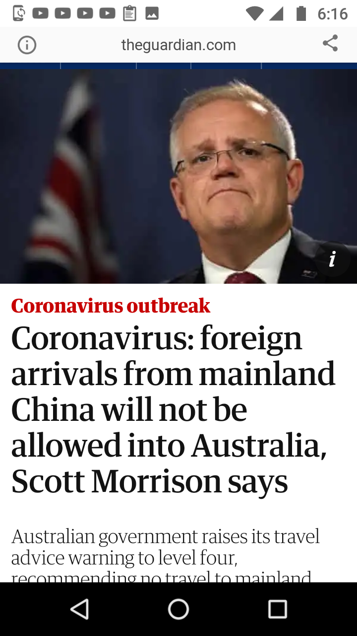 Coronavirus: foreign arrivals from mainland China will not be allowed into Australia, Scott Morrison says | Coronavirus outbreak | The Guardian