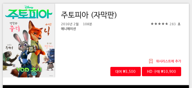 주토피아 VOD 가격 내렸네요 > 자유게시판