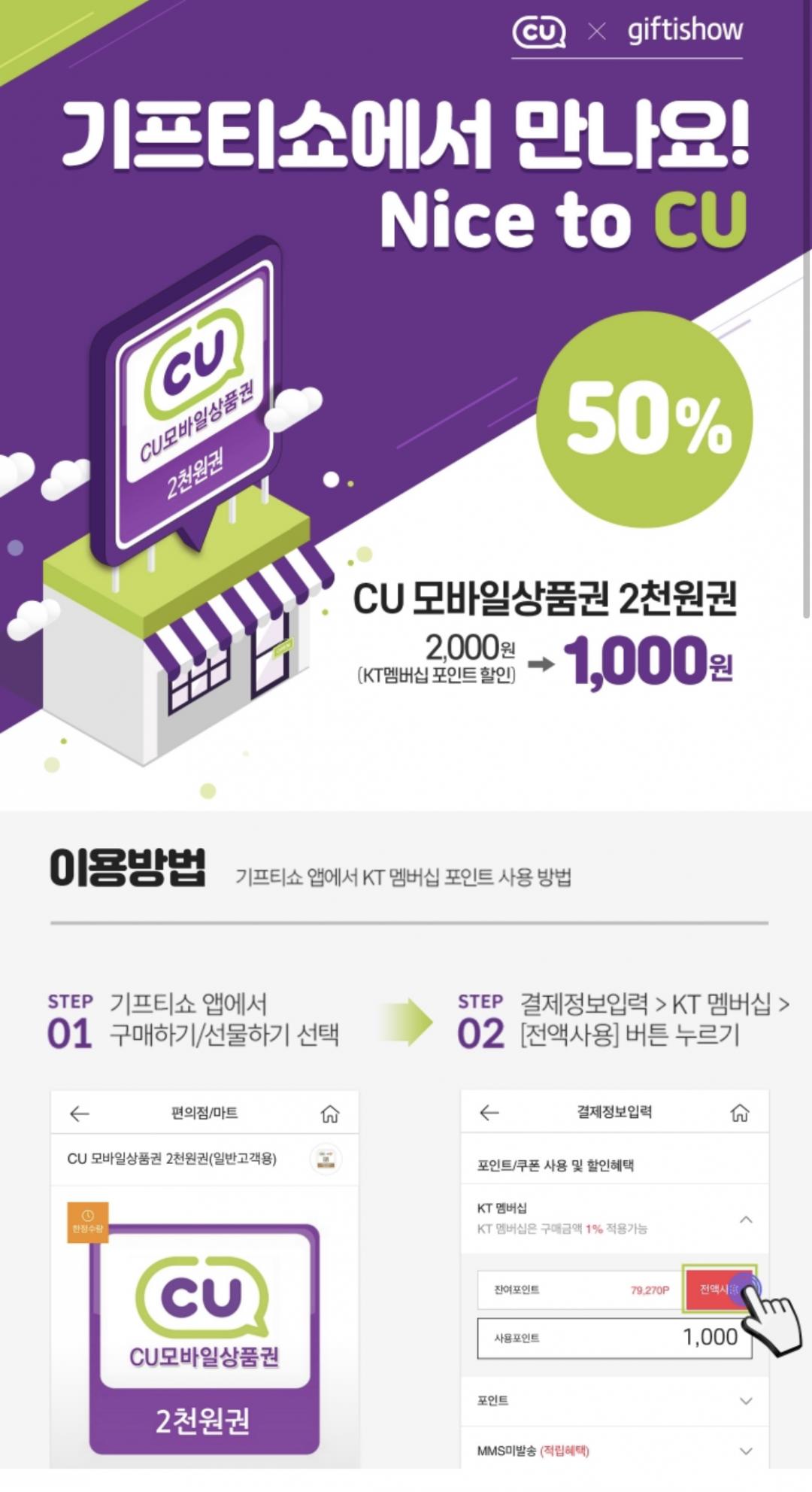 기프티쇼 kt멤머십 차감 이벤트 cu 2천원->1천원