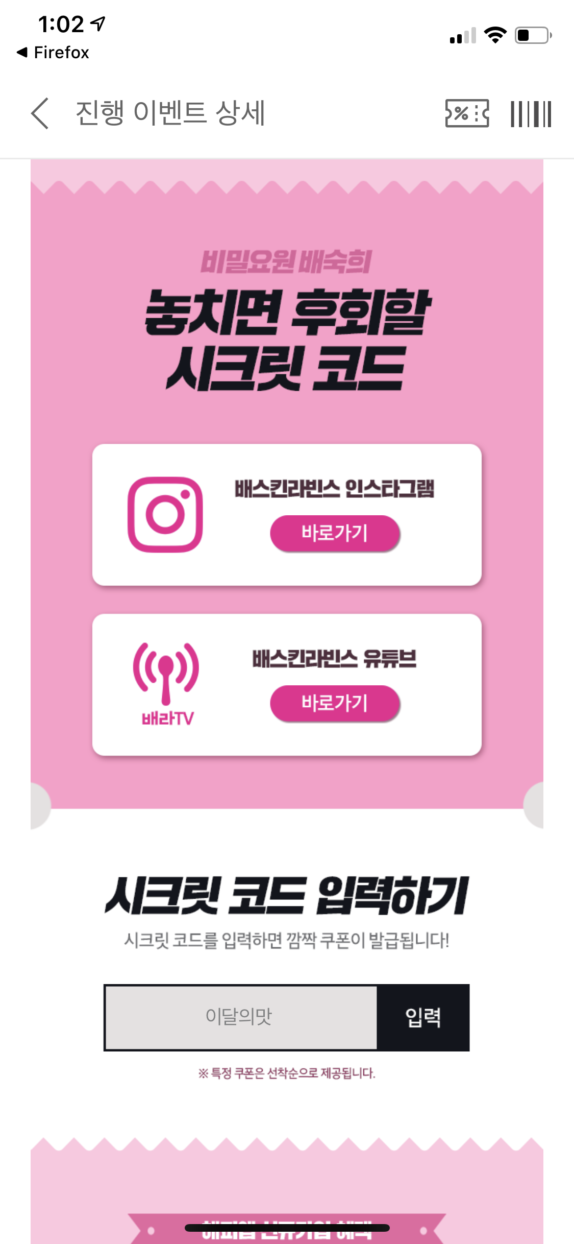 이벤트기간 아니라 뜨네요ㅠ |