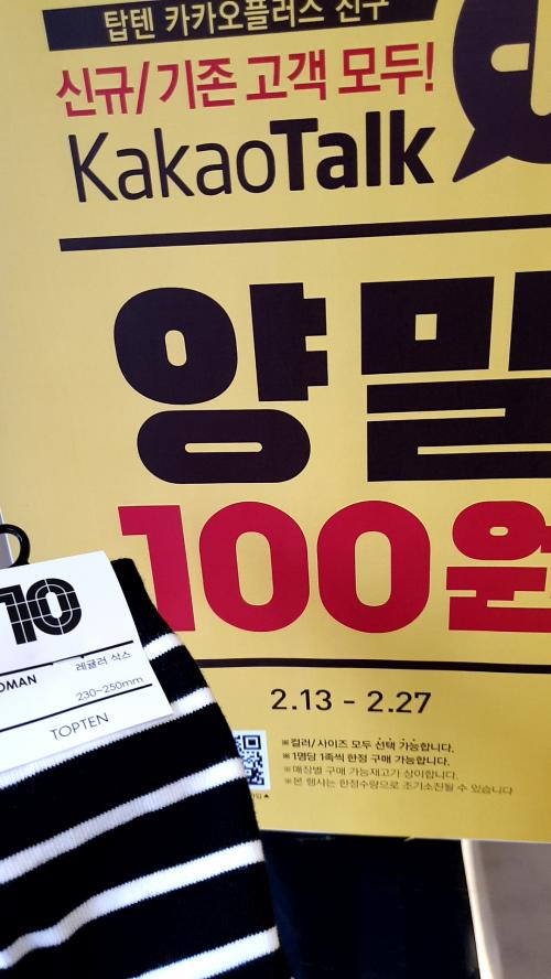 탑텐 카카오톡 친구 추가시 양말 100원 (오프라인) > 자유게시판