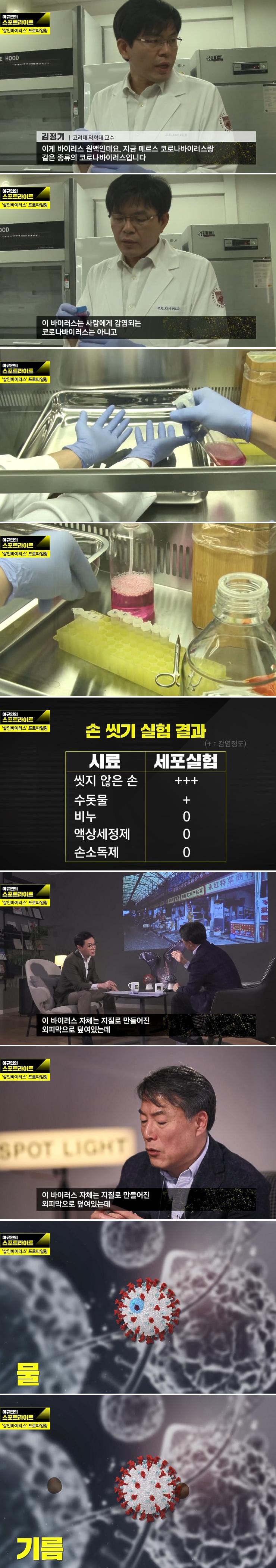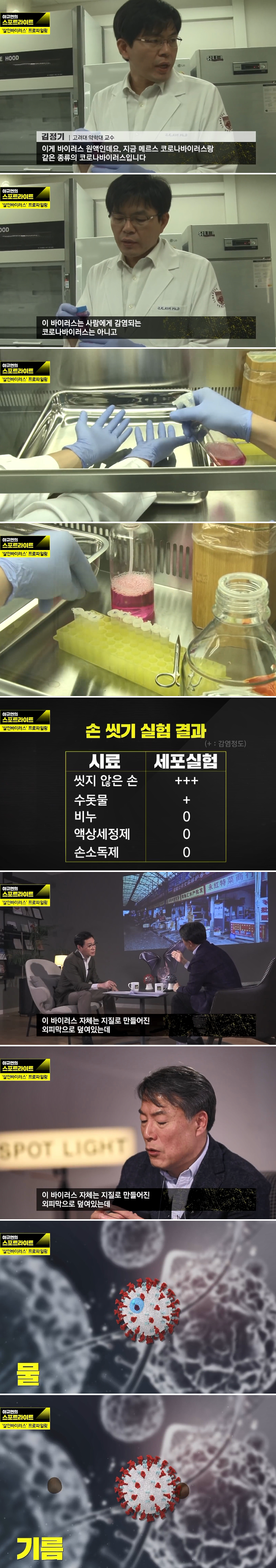 기름 성분이 들어 있는 세정제, 비누가 Virus 를 파괴함.
