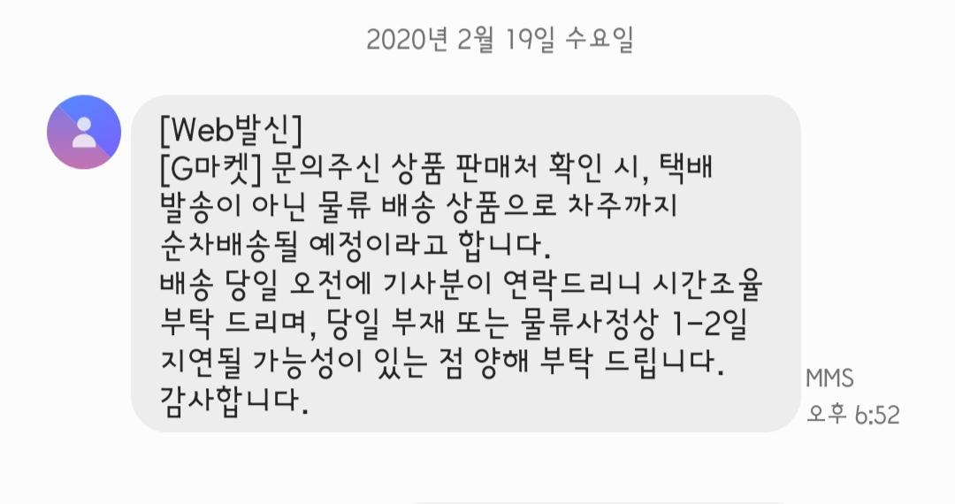 당연히 택배로 올줄 았았는데 대형가전 주문시 오는