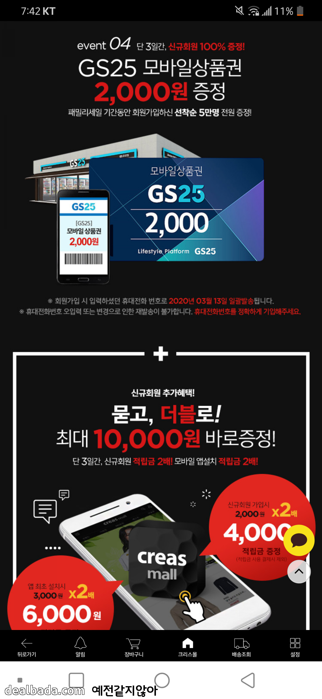 오늘까지 회원가입자 전원 Gs상품권 2000원 이에요.