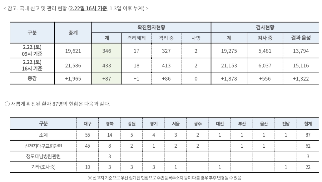오늘 4시 기준 21153 검사완료 (+1878)