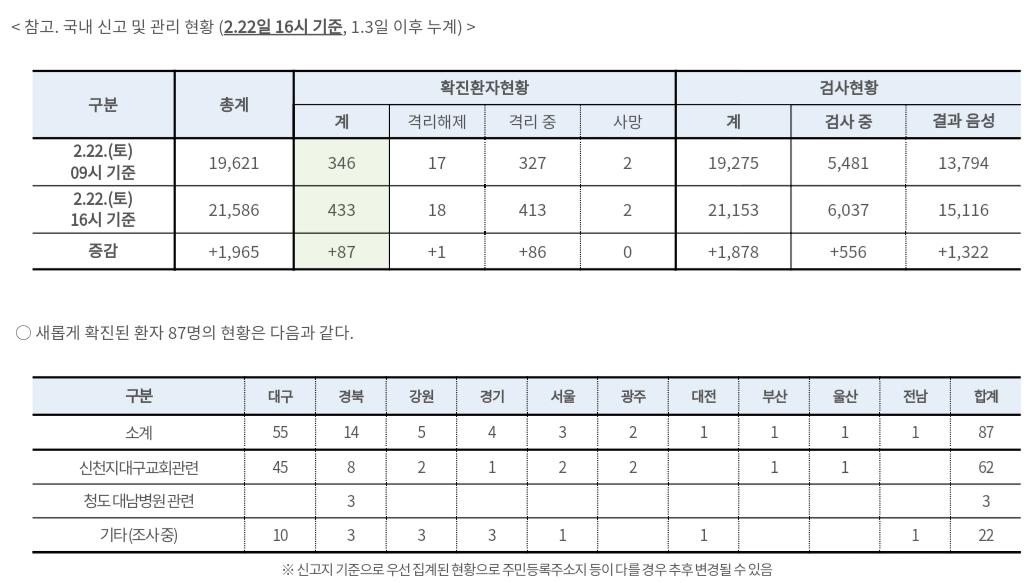 1878명 검사 87명 확진 대충 4.6%
