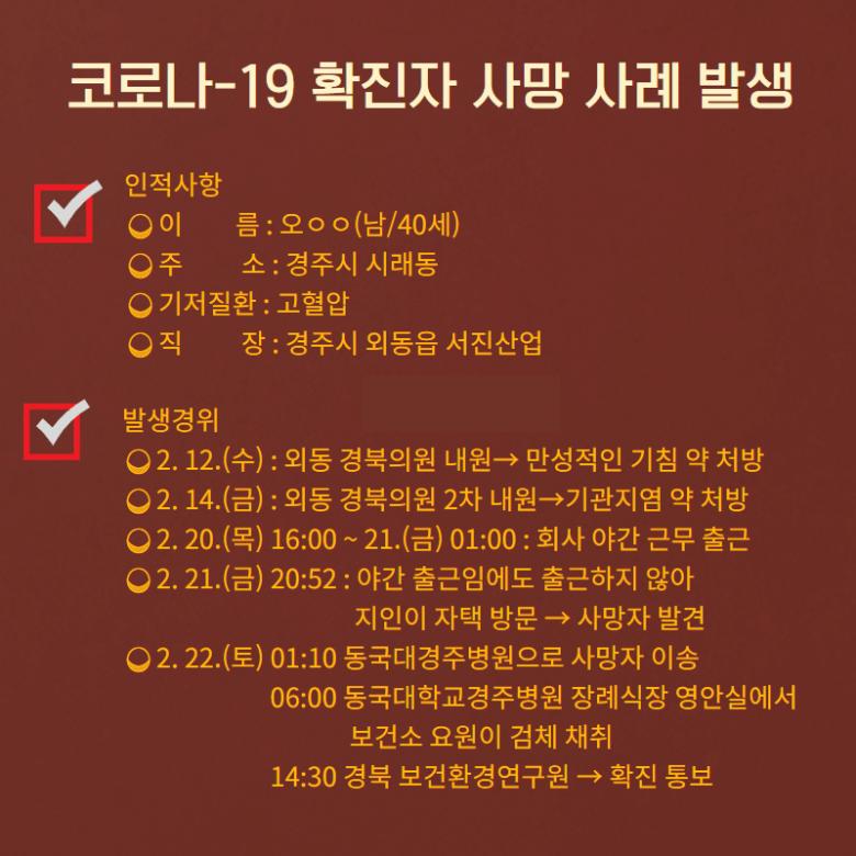 아 사망 후 확진판정 받은 거군요. 정정합니다. |