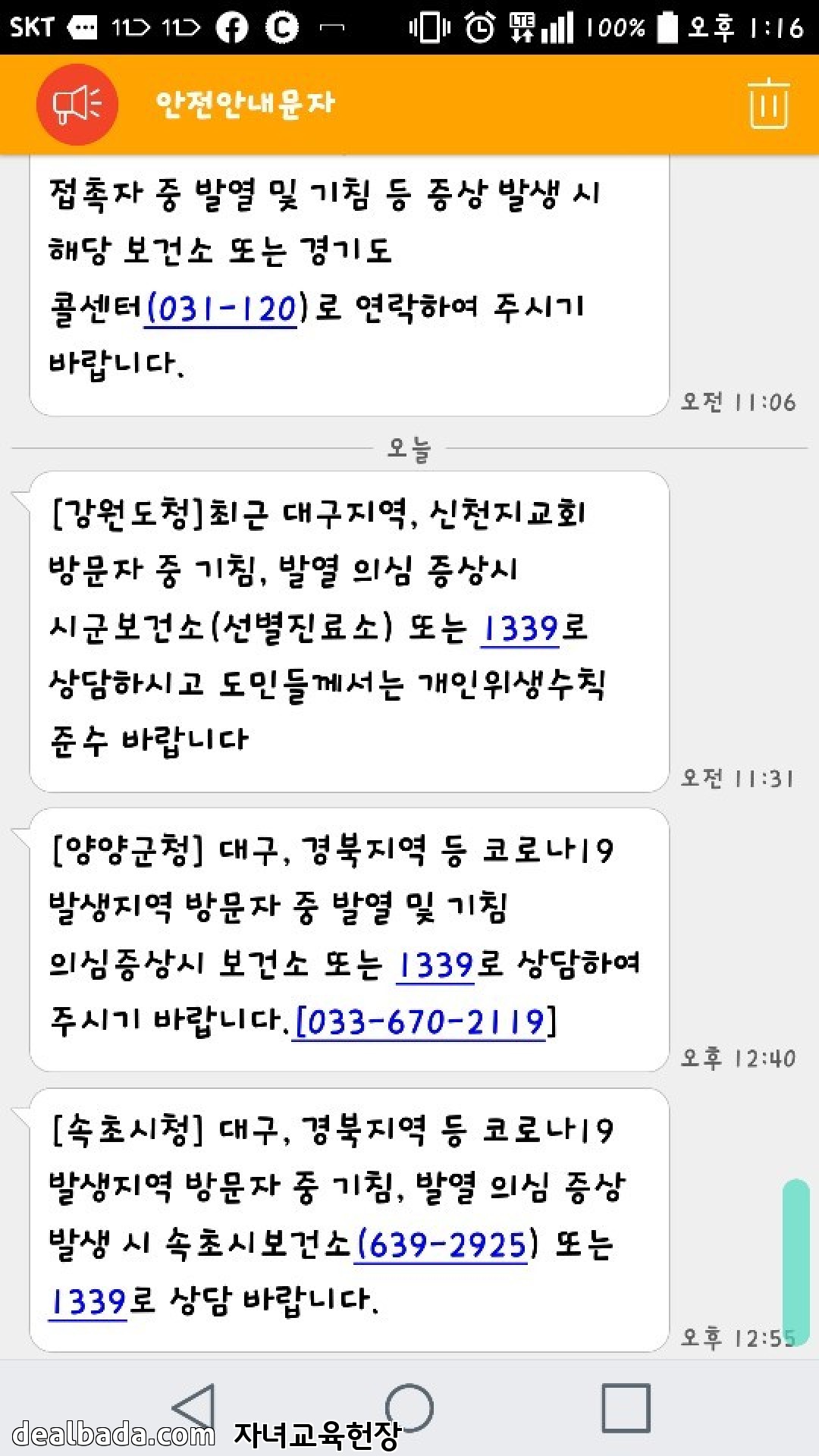 삼척도 있고, 속초도 있고, 춘천도 있고, 확진자가 엄청 많더라구요..