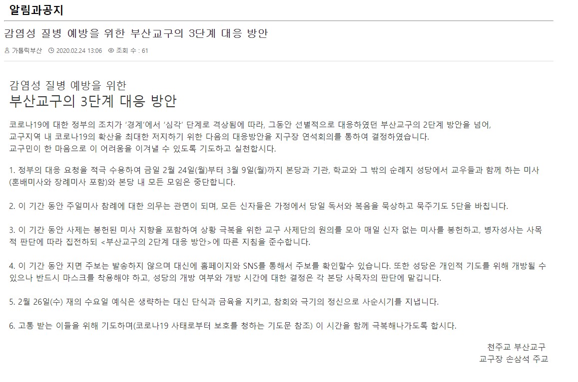 일부 생각이 막힌 분들이 미사가 왜 없냐고 항의하기도 한다는데