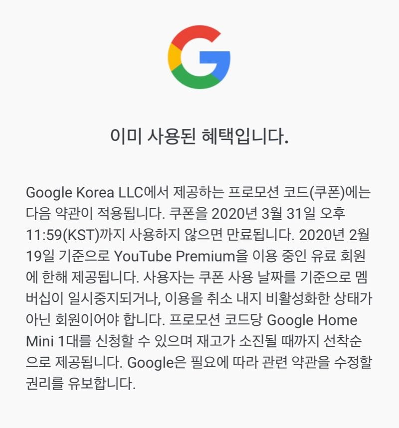 1월부터 돈 내고 있었는데 구글 홈 미니 받아야겠네요 ㅋㅋㅋㅋ