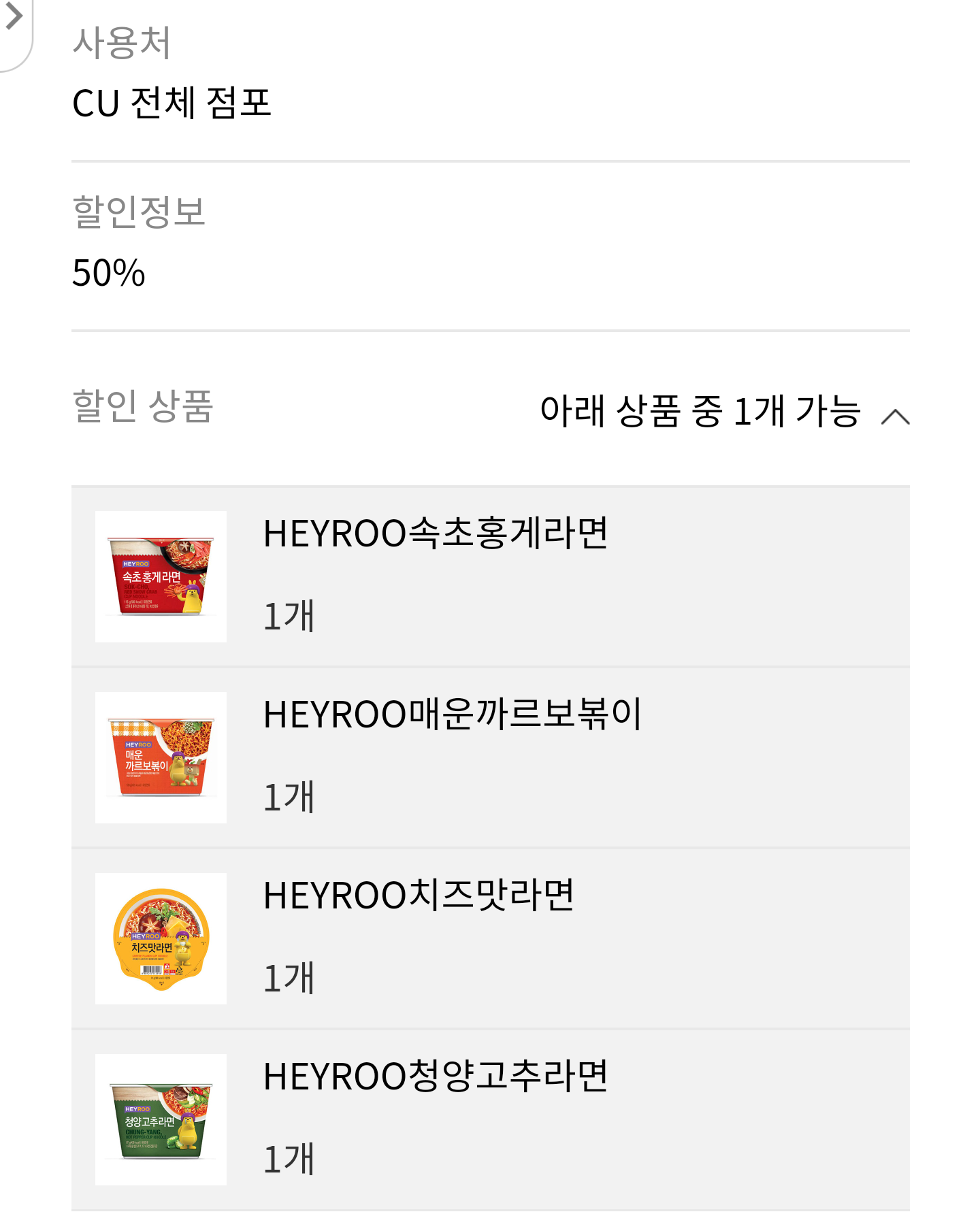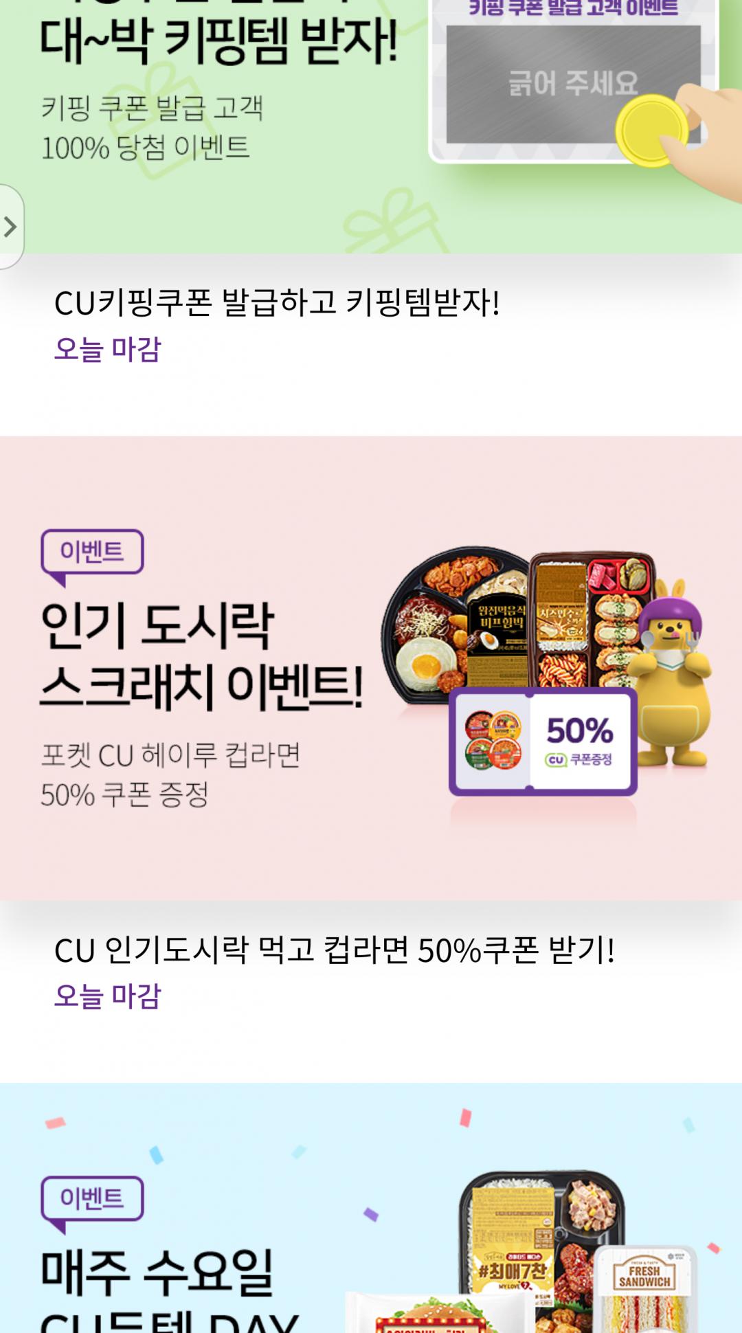 [나눔완료]cu 앱 헤이루 컵라면 반값 쿠폰 나눔 > 자유게시판
