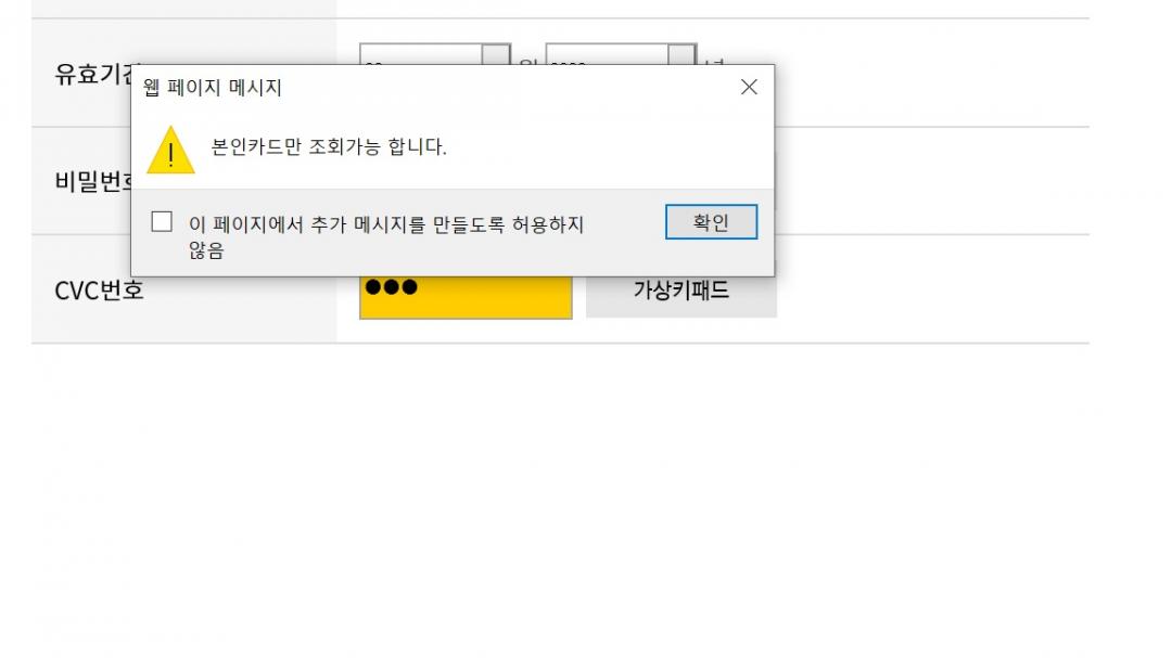 자꾸 본인명의카드만 된다는 경고창이 뜨네요.ㅠ