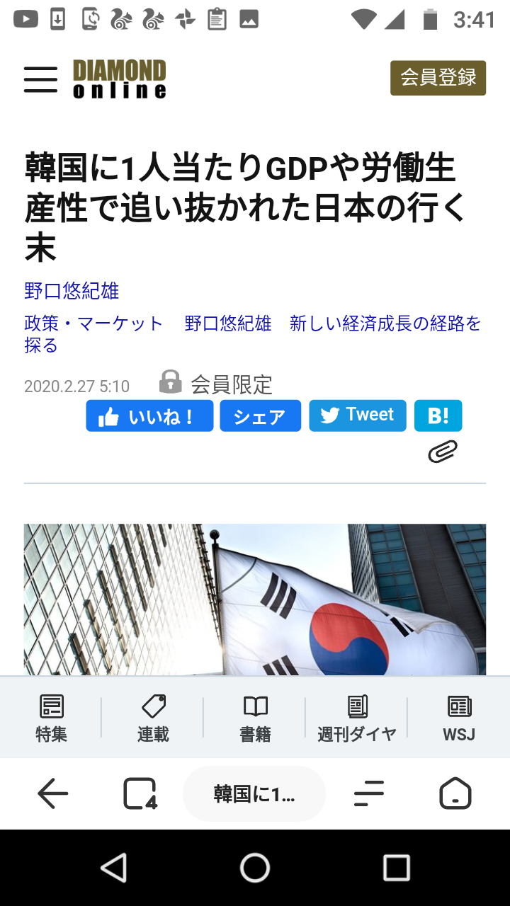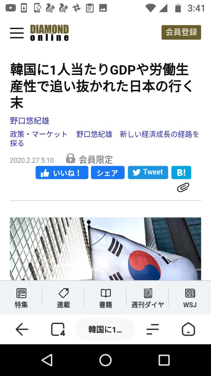 출처 ▶ 韓国に1人当たりGDPや労働生産性で追い抜かれた日本の行く末 | 野口悠紀雄 新しい経済成長の経路を探る | ダイヤモンド・オンライン