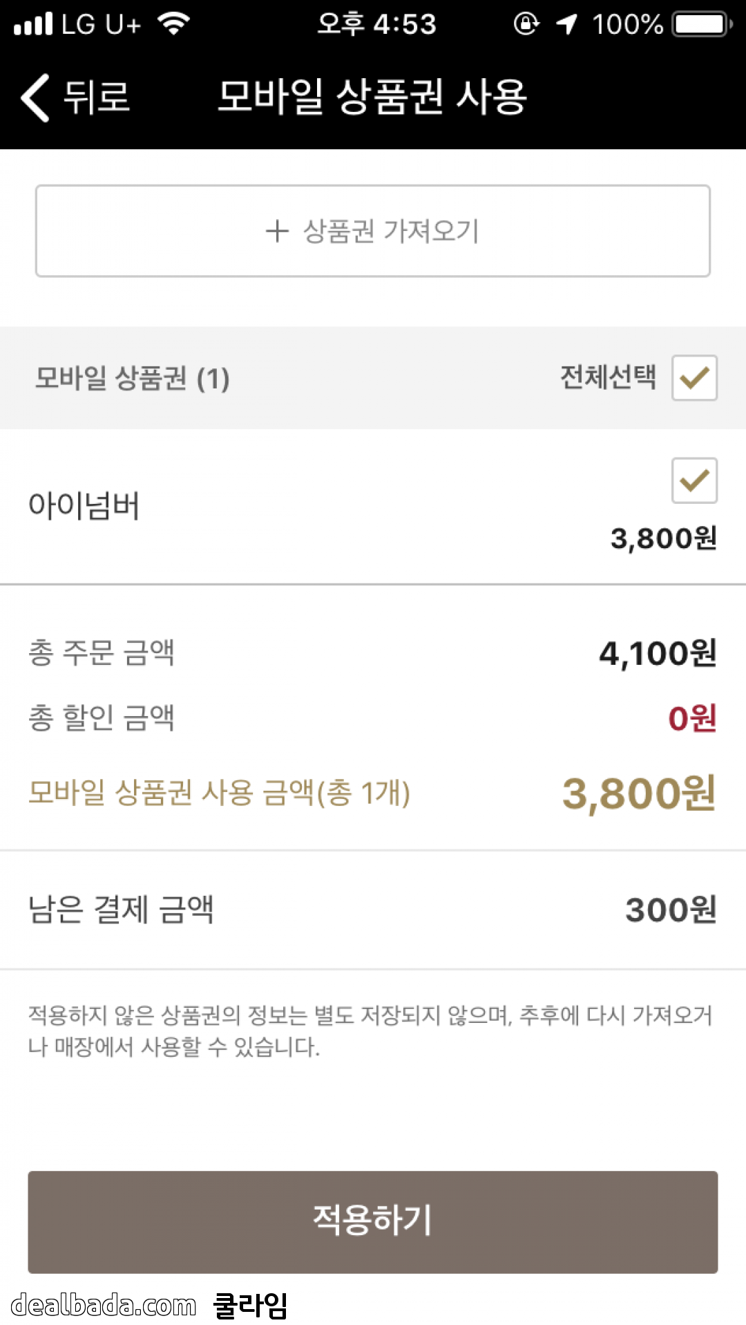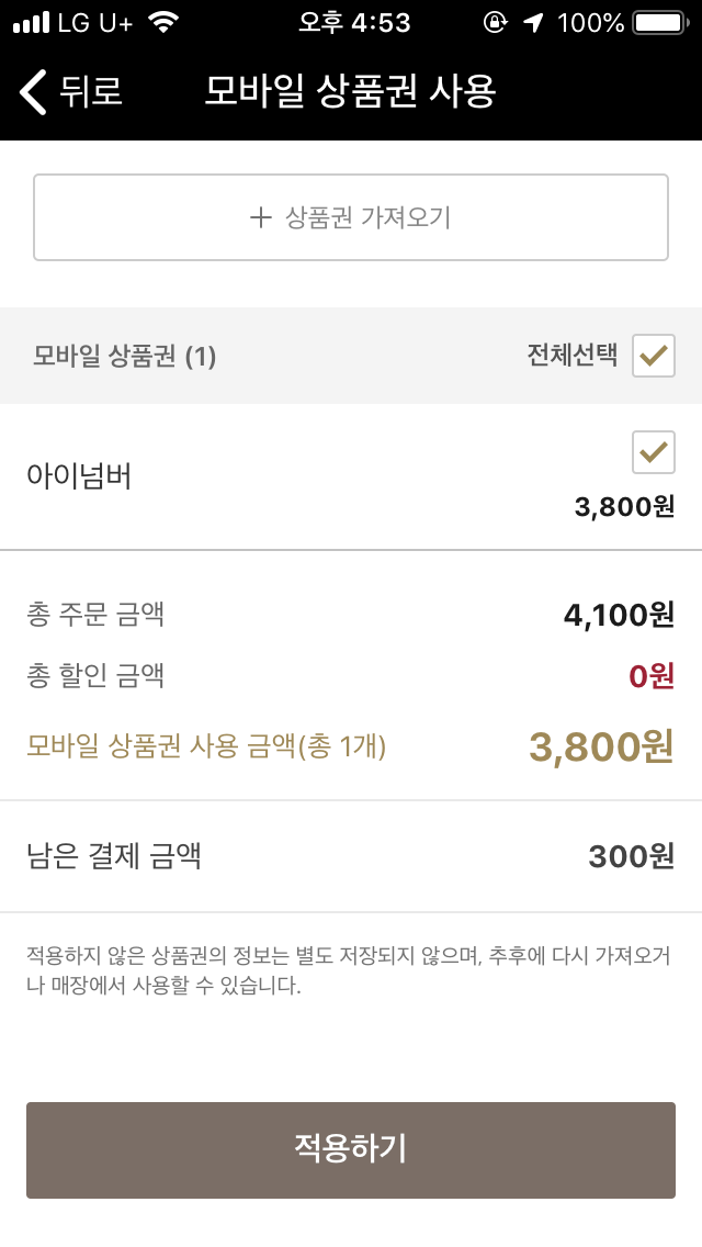기프티콘 사용때문에 사이렌오더 주문이 아쉬울때가 많았는데