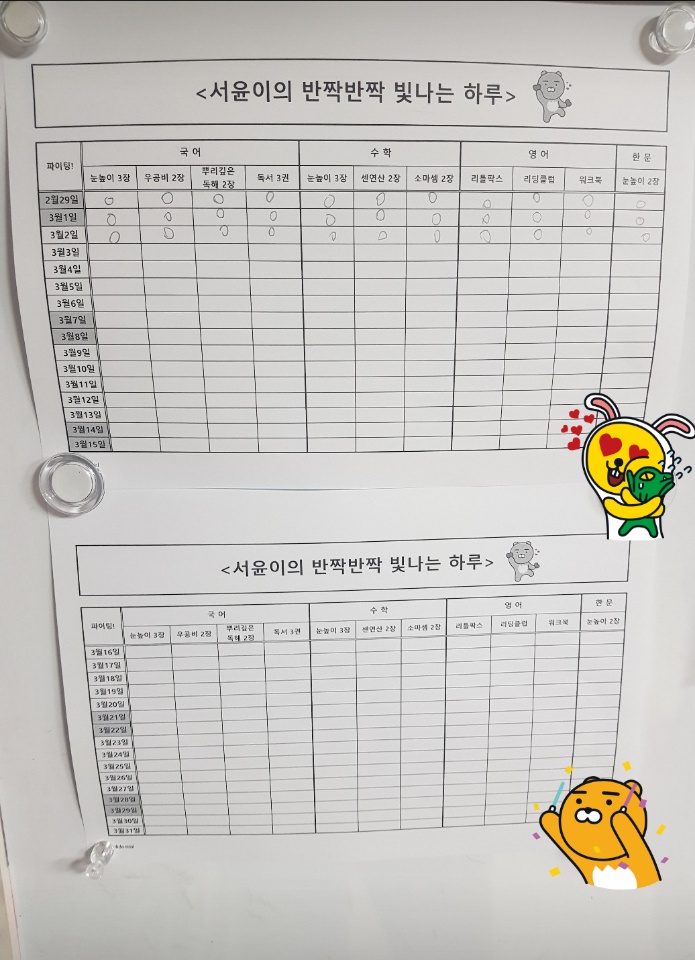 첫째 서윤이의 일일계획표입니다.