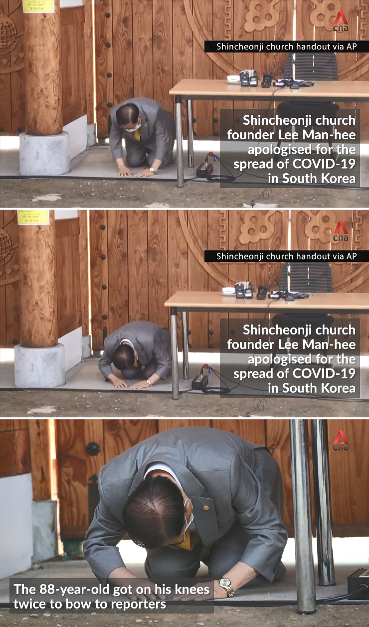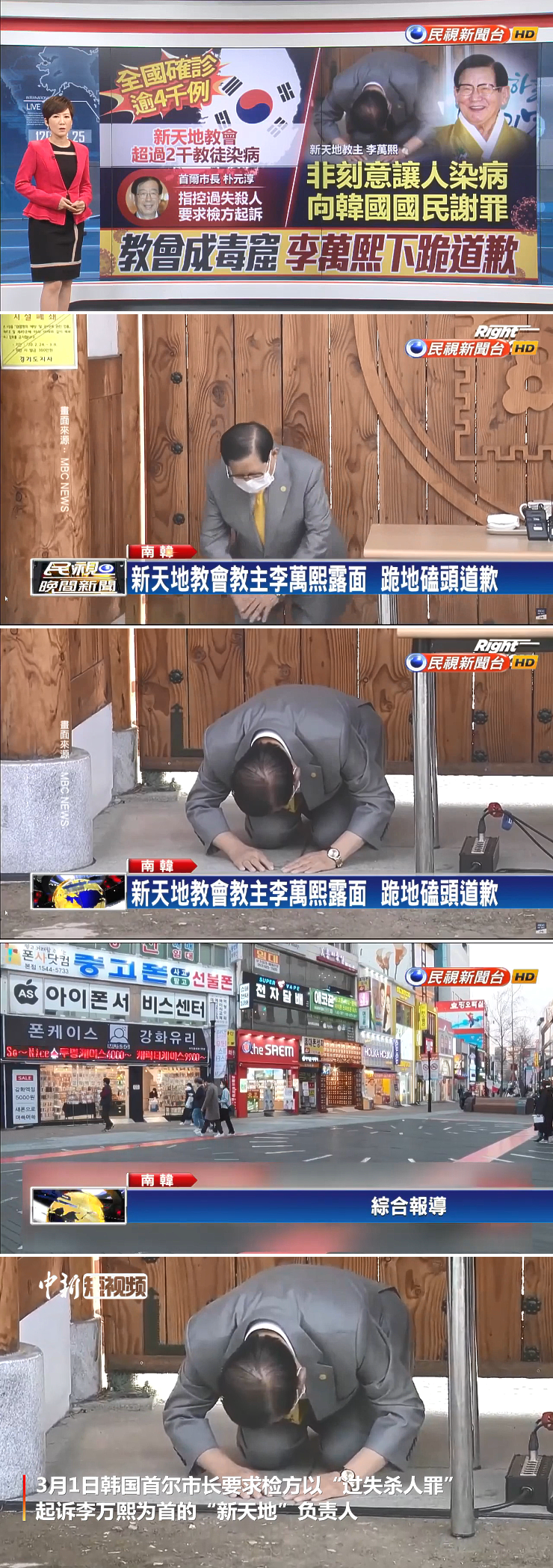 외국 뉴스 - 신천지 이만희 무릎꿇는 장면