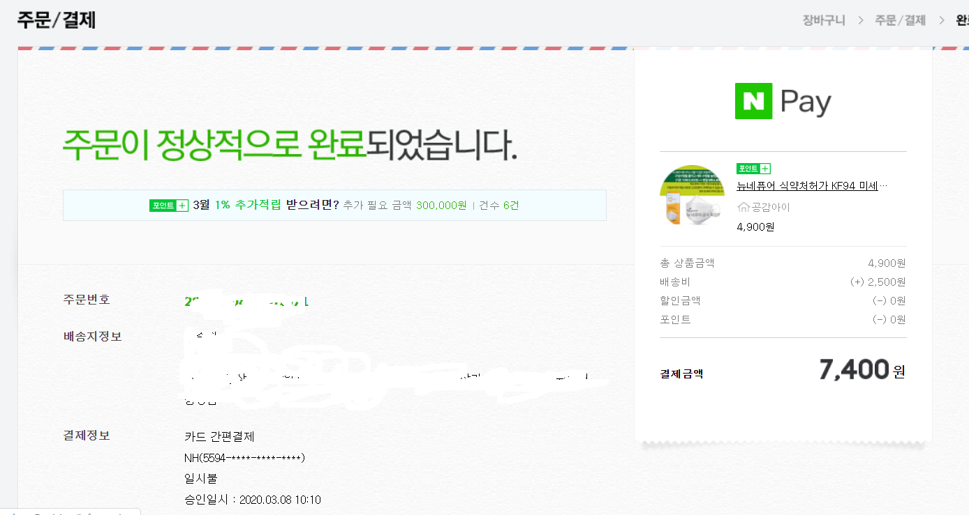 인터넷 착한가격 마스크 구매 첫성공 ㄷㄷ