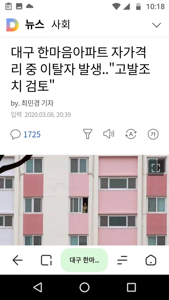 대구 한마음아파트 자가격리 중 이탈자 발생.."고발조치 검토" | 다음뉴스