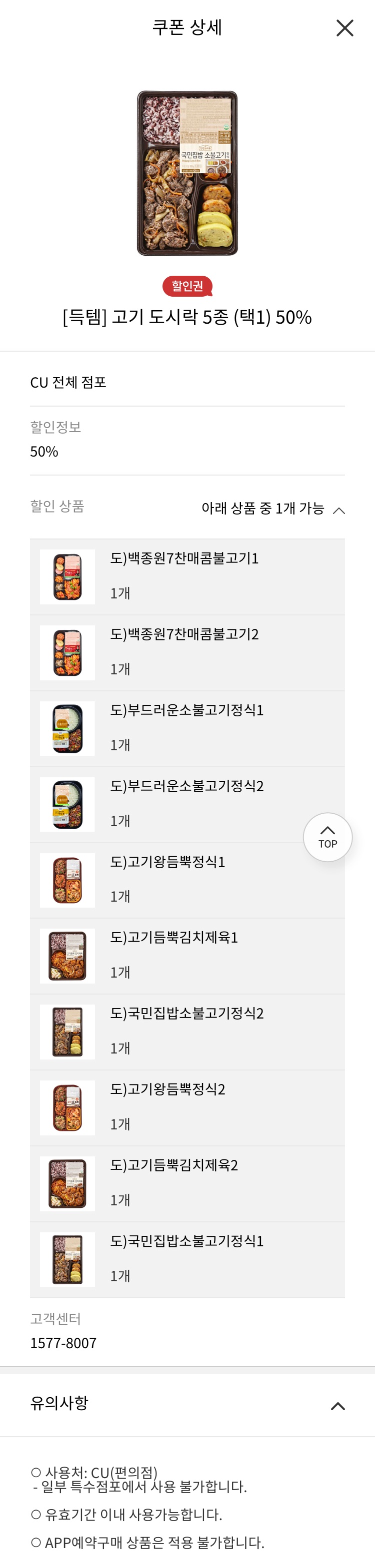 종료)내일까지 cu 50% 도시락