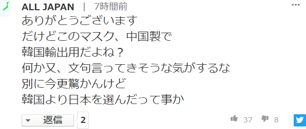 다들 감사하다는건 알겠지만 지금까지 중국인들이 얼마나 일본과 한국에서 많이 마스크 사재기 했는 지 알 수 있는 게 아닐까?