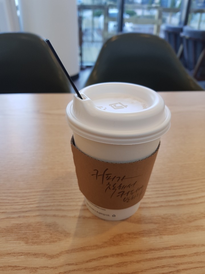 회사 일 있어 잠깐 외출했다가 카페에서 달달한 커피 한잔하고 있습니다.
