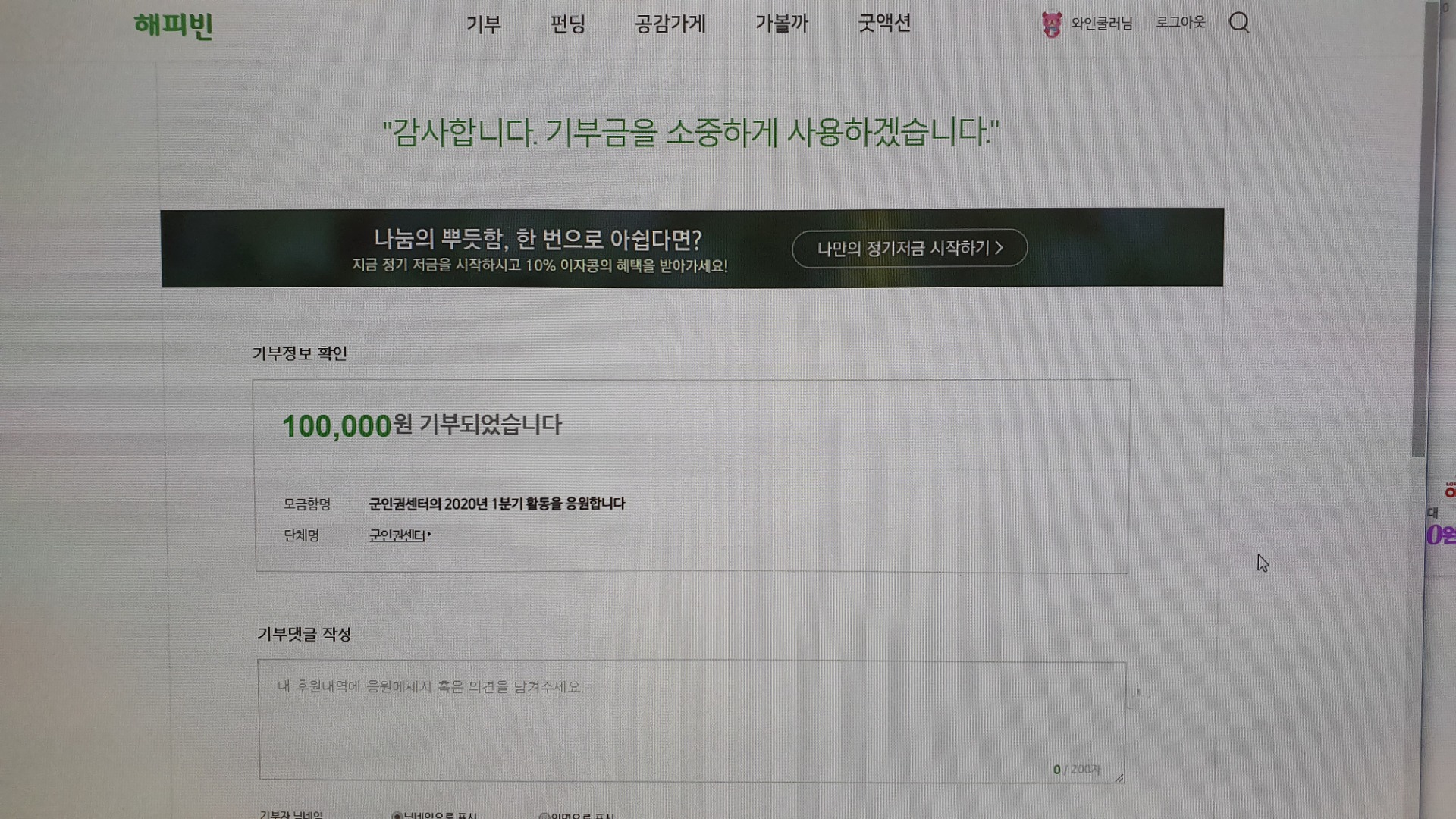 군인인권 기부 인증