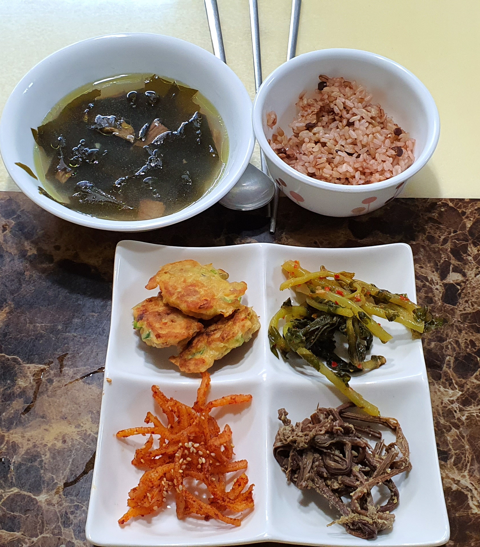 만드는데 오래걸린것 같은데 반찬이 몇가지 없네요..