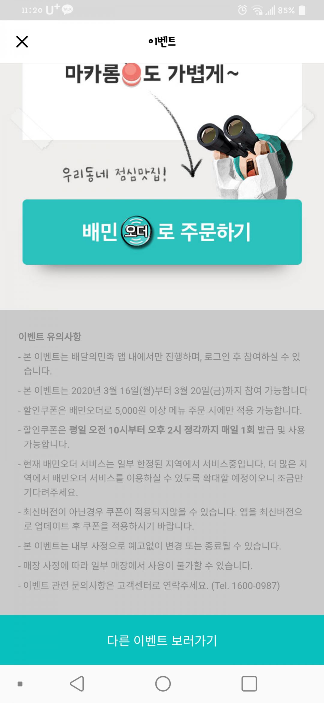 아직 배민오더 쿠폰 등록 안 하신 분들 계시면 배민 쿠폰 등록하기 들어가셔서 "배민오더"라고 써보세요. 이번달 내 쓸 수 있는 배민오더 3천원 쿠폰 받으실 수 있어서 점심할인이랑 같이 사용하시면 좋을 것 같아요. 전 어제 이미 써버려서...^^;