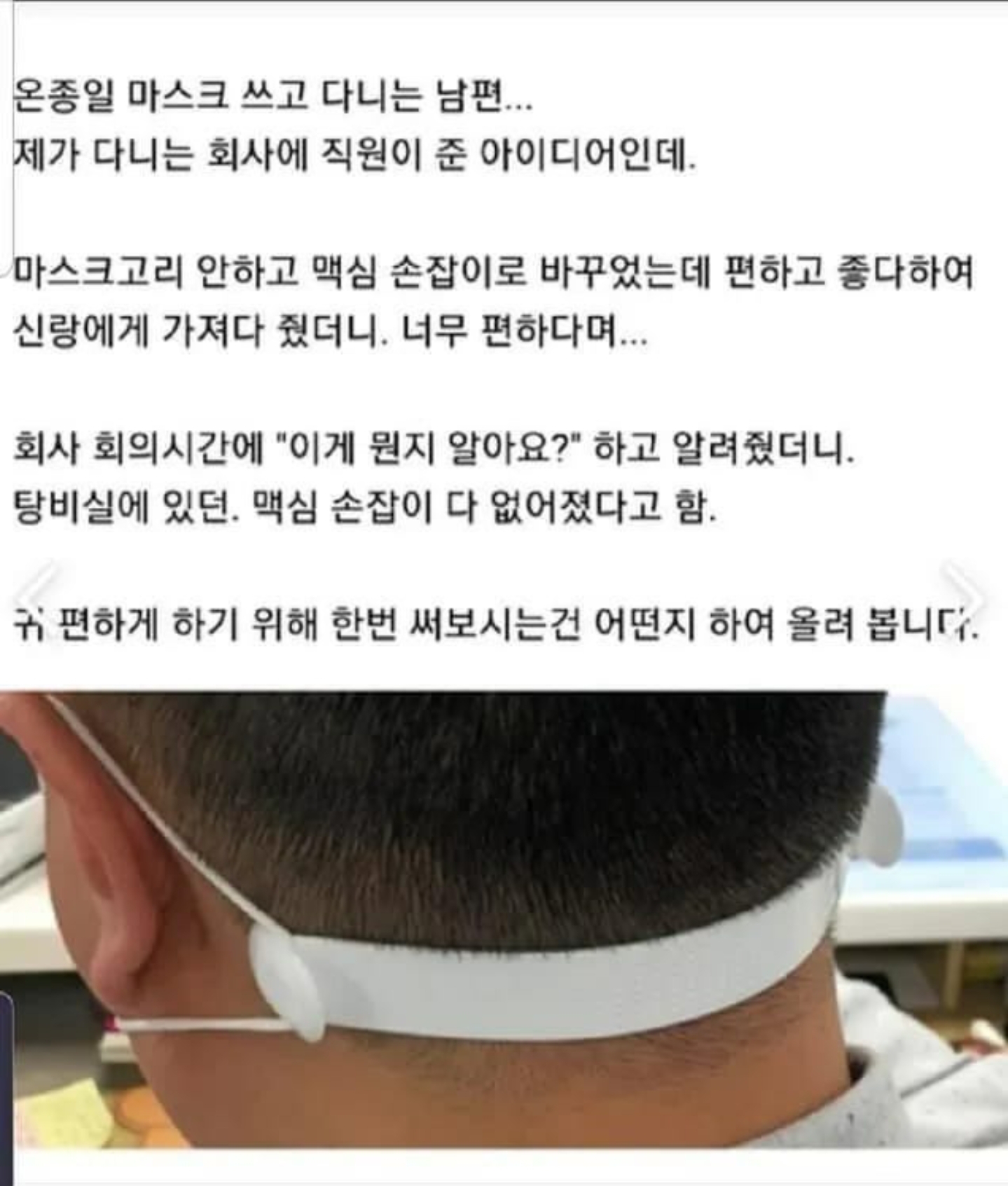 그나저나 보통 마스크에 마스크전용걸이가 있는데 대두이신 분은 이렇게라도 사용을.....