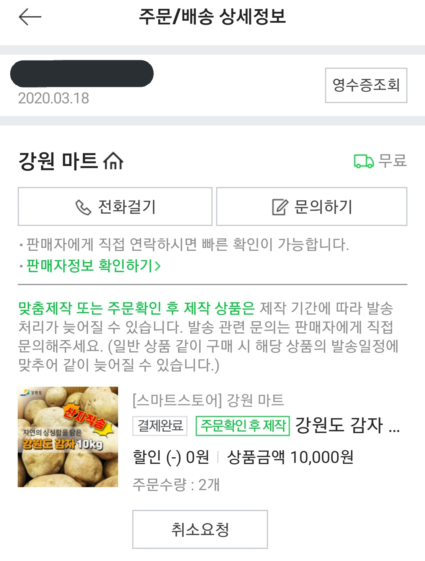 10시 2분에 결제완료가 되었습니다.