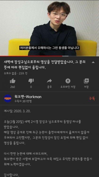 장성규씨가 사과 할 일이 아닌데