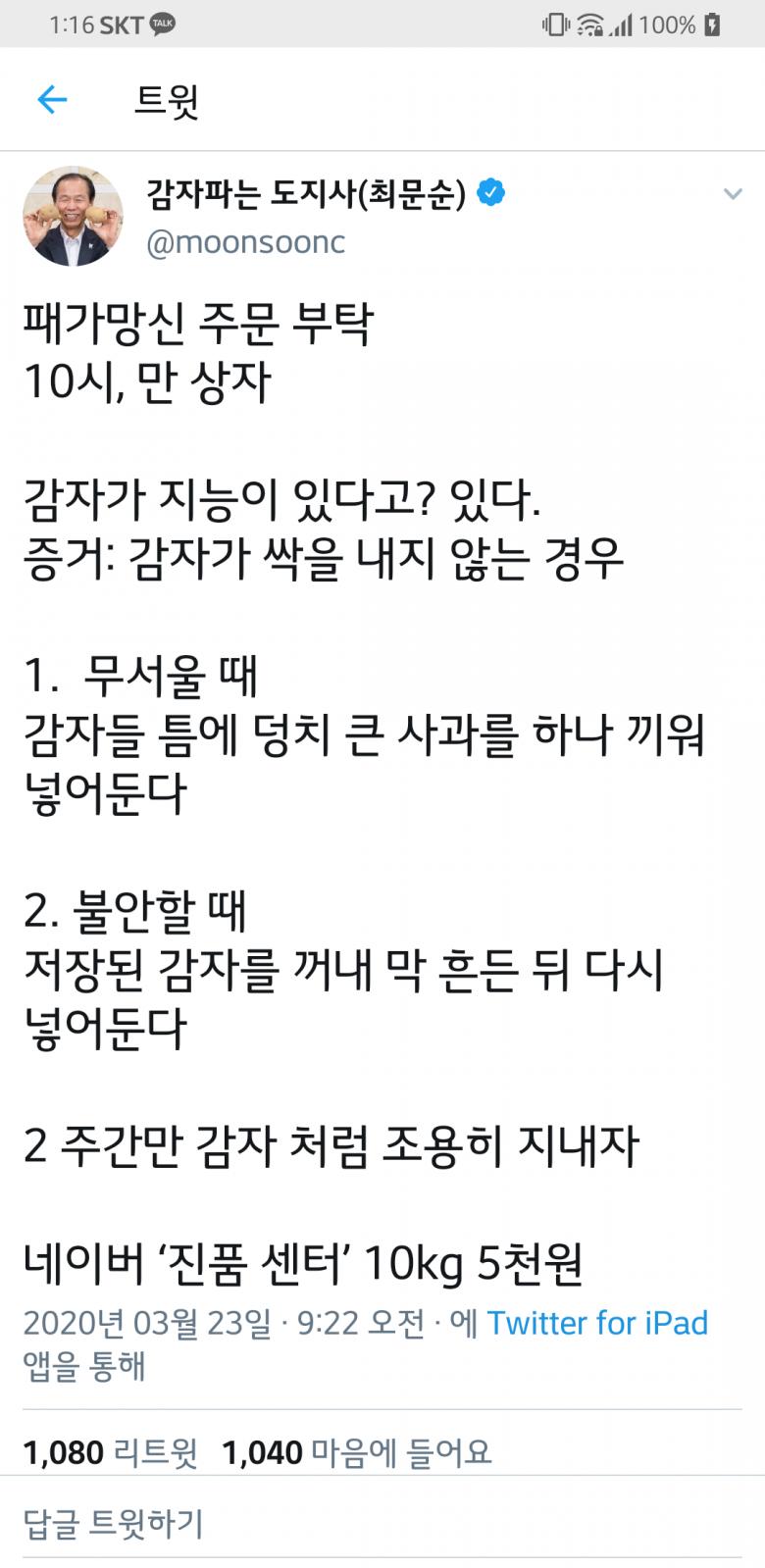 작성일: 2020-03-23 19:31:11 조회: 568  /  추천: 7  /  반대: 0  /  댓글: 7 ]