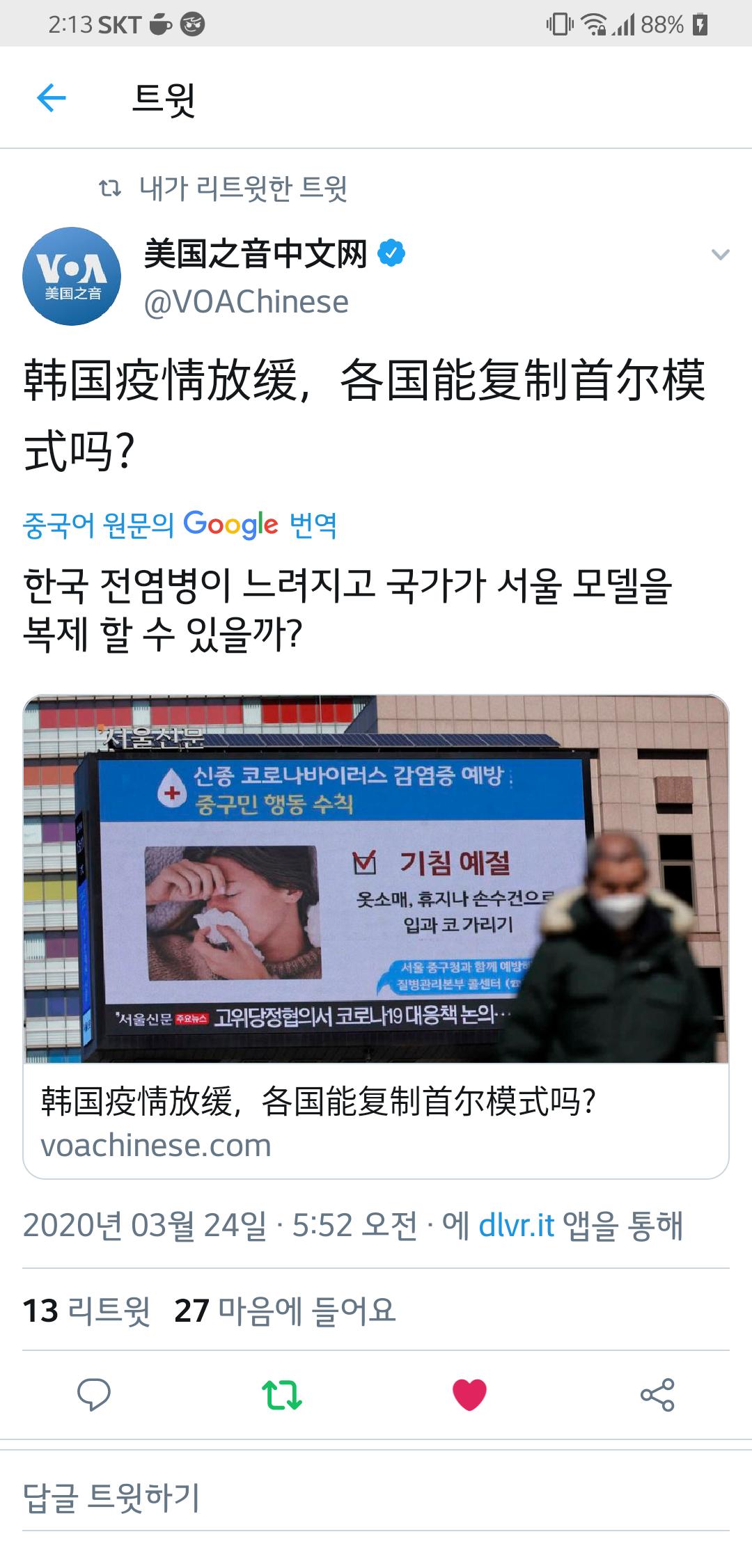VOA는 옛날부터 공산권 국가들에 유명했던 미국식 프로파간다 언론으로 유명하죠..판문점 선언, 북한 석탄 수출 오역문제로 현정부에서 퇴출시킨걸로 알고 있어요. 안봐도 '봐라 옆나라 민주주의 한국은 (공산주의 중국보다)이렇게 잘하고 있다'라는 기사일거 같네요...뭐 틀린말은 아니지만... |