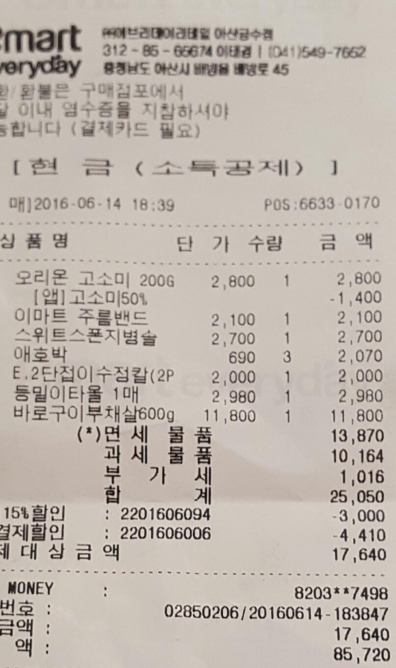 영수증 참고하세요