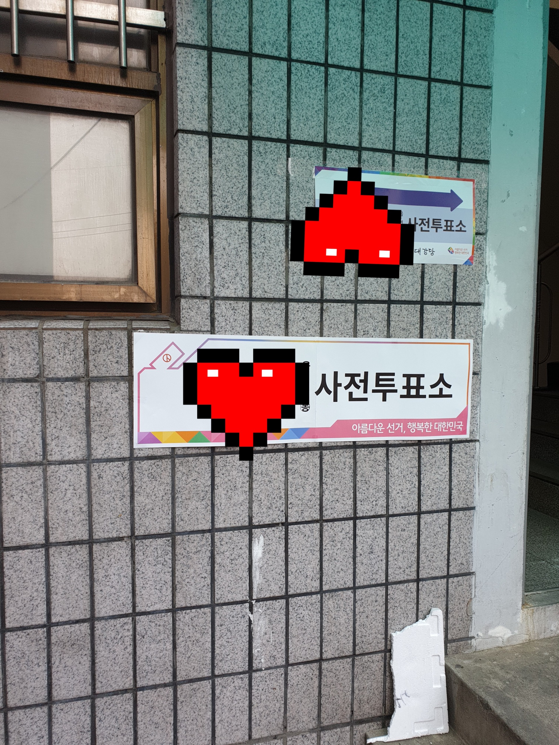 사회적 거리두기(1m) 때문에 줄이 긴 것 처럼 보이긴 했는데 10분 정도 기다렸다가 투표했습니다.