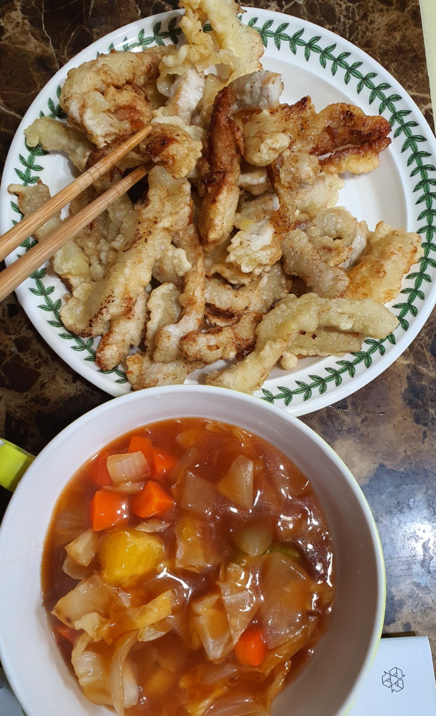 오늘 저녁은 탕수육과 짜장라면 먹었네요.