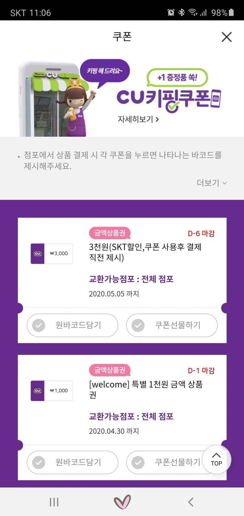 11시 포켓CU 득템쿠폰