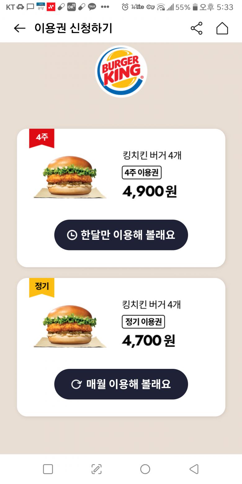 버거킹 아메 말고 버거를 한달동안 매일 먹을수 있는거 분명봤는데