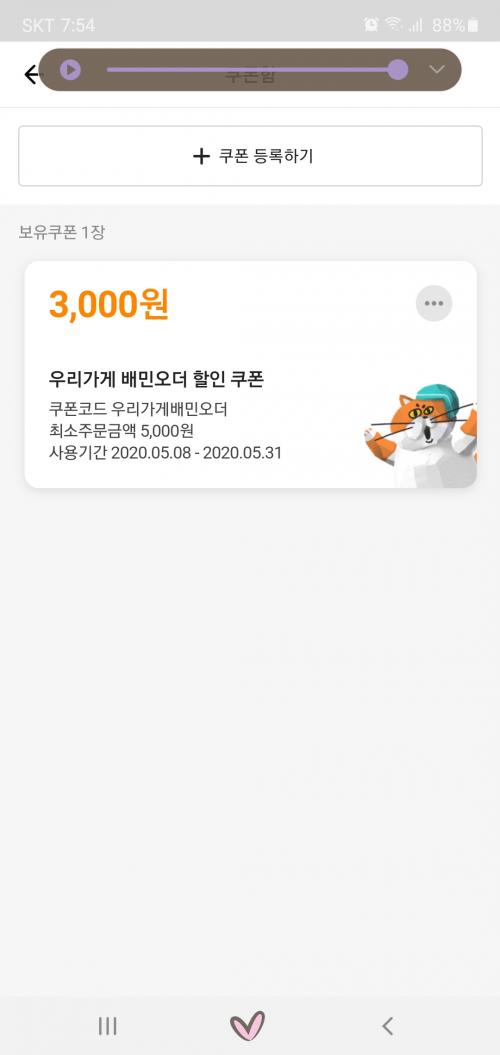 쿠폰등록에 우리가게배민오더 였군요 ㅎ | ||